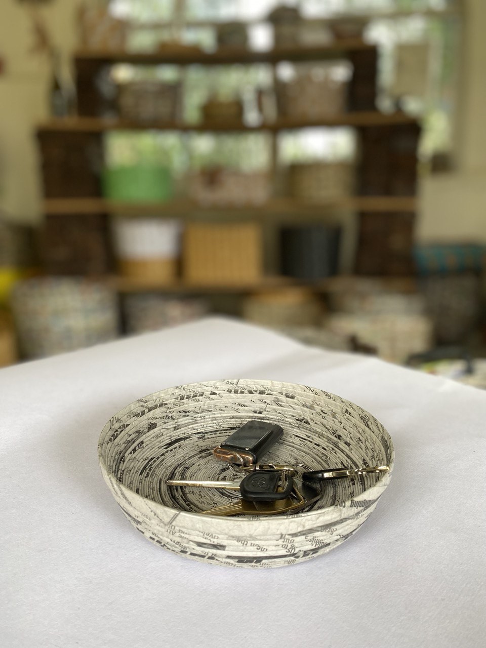 Bowls either made from newspaper or craft paper and can be used either for storing small items like jwellery or serving anything dry like cookies